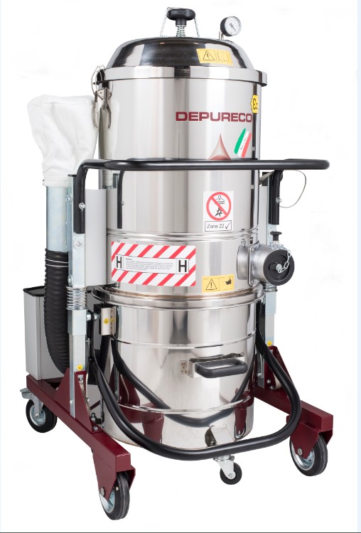Depureco ACZ21是根據ATEX指示設計及生產(chǎn)的,它帶有304不(bú)鏽鋼的過濾(lǜ)腔和集塵桶,2D IP66認證的防爆盒上的熱感開關,帶消音(yīn)器的風速減速裝置,出(chū)風口(kǒu)的過濾器,使真空效(xiào)能始終(zhōng)處於可控範圍的(de)轉速計,M級特氟(fú)龍塗層的聚酯主過(guò)濾器,位於西門子側風電機(jī)上的釋放閥,或者根據客戶需求,也可安裝HEPA14的過濾器(qì)(過(guò)濾效能99.995%)來過濾極細/有毒灰塵(chén)。
