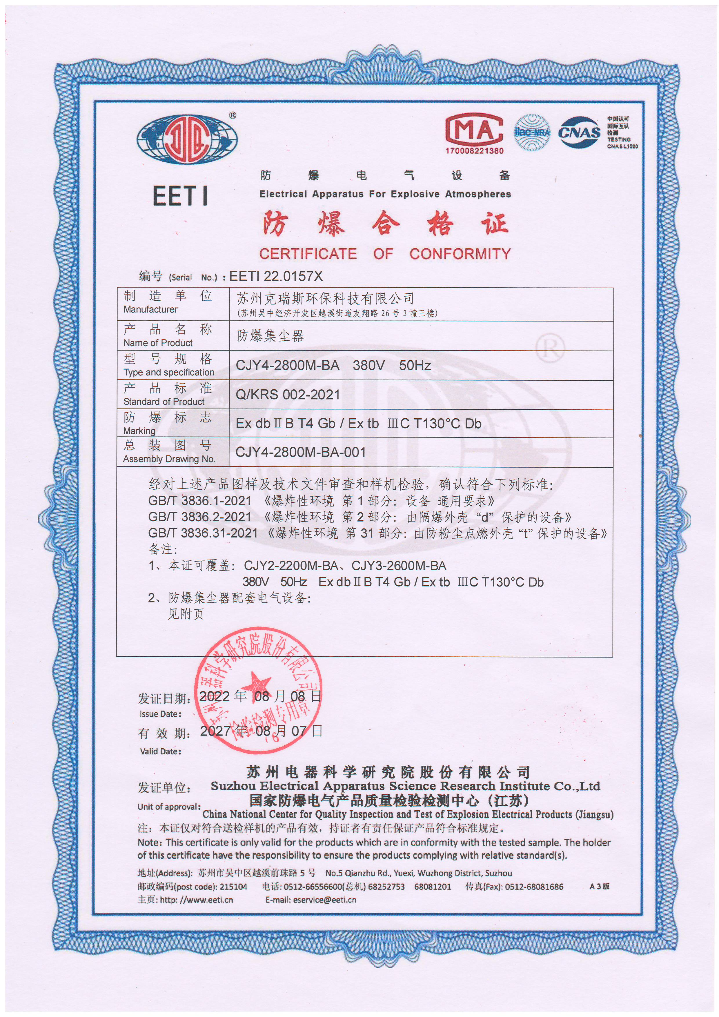 | 防爆(bào)等級(jí) | Ex db ⅡB T4 Gb / Ex tb ⅢC T130℃ Db | |||