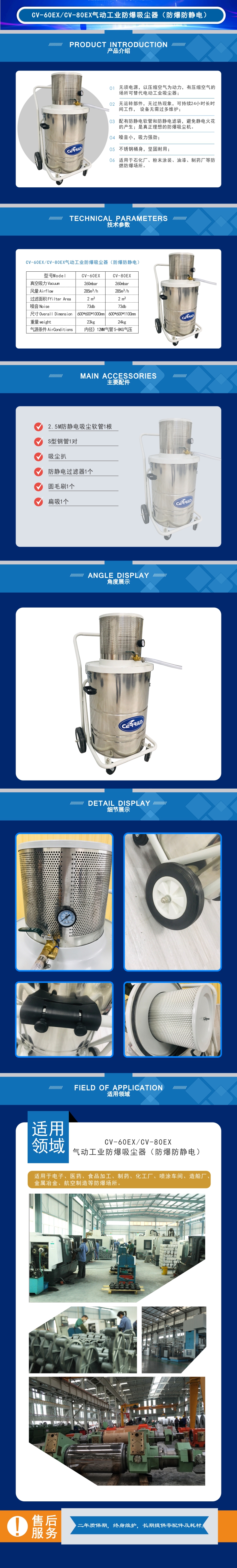 3、配有防(fáng)靜電軟管和(hé)防靜電濾袋,避免靜電火花的(de)產生;是比較安全的(de)防爆吸塵機。