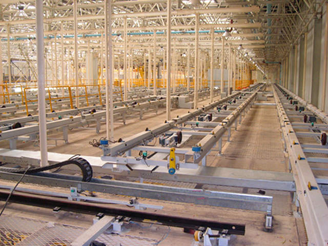 此項(xiàng)目為滑撬線體加移載小車和升降機,將塗裝車間的車頭(tóu)移載(zǎi)到存儲區,根據總裝需求再移(yí)載下降(jiàng)到地麵總裝。